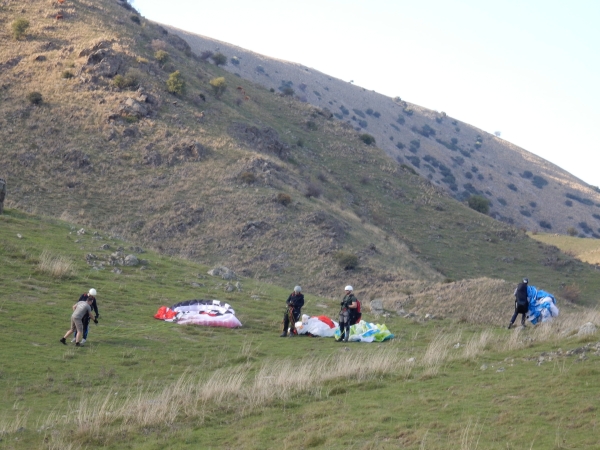 New pilots week Lee Dave and their students training at Mount Olympus Beginner course paragliding holidays in Greece with Olympic Wings