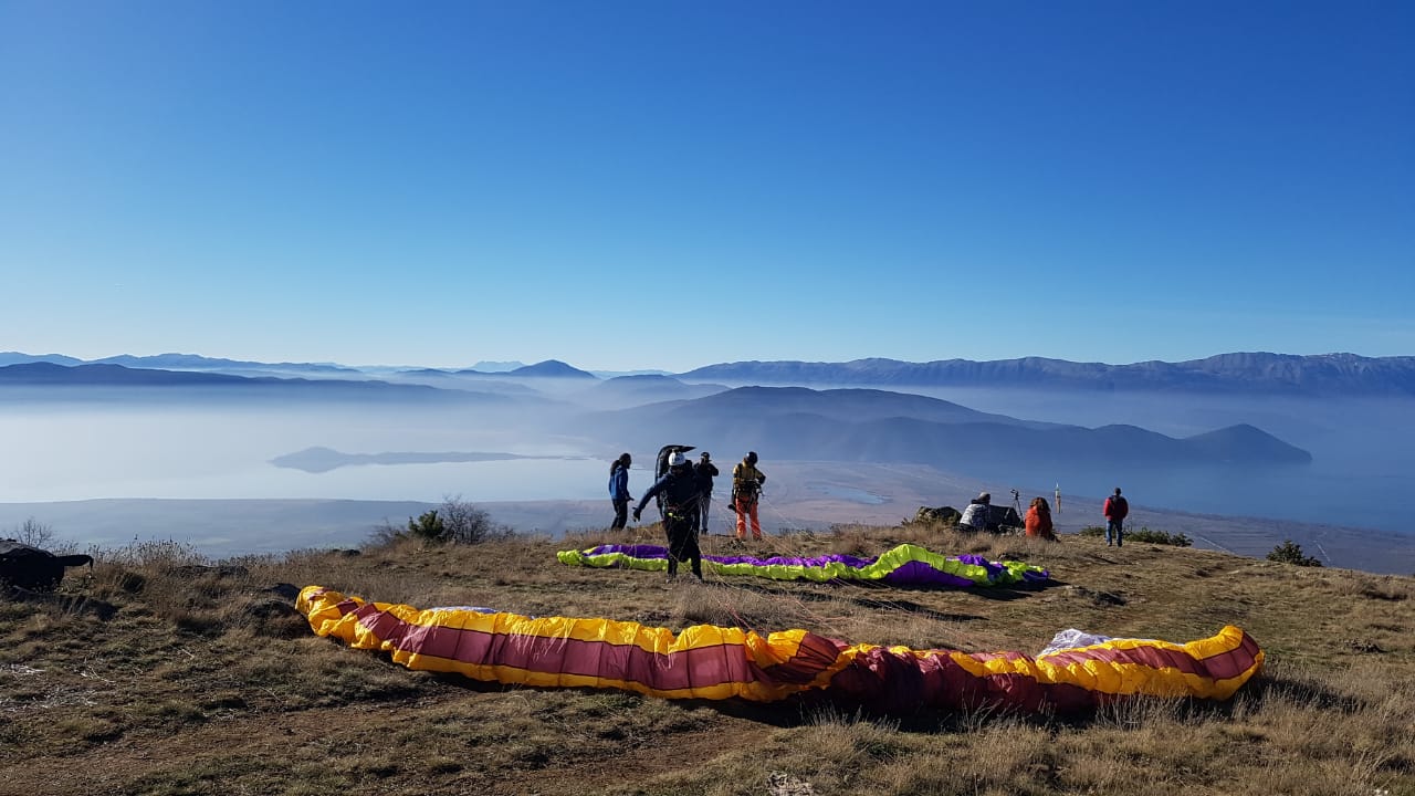 Prespa Lakes winter paragliding with amazing views
