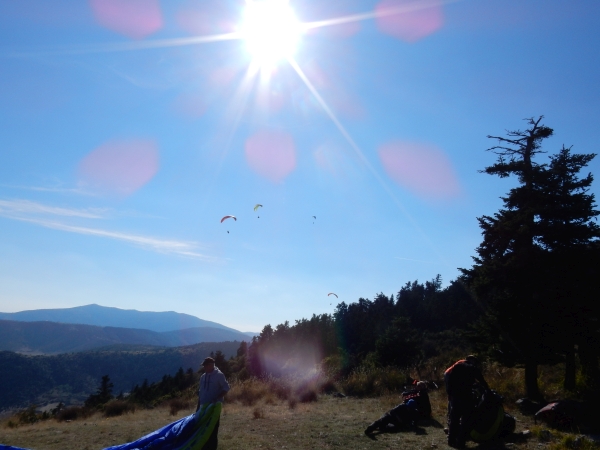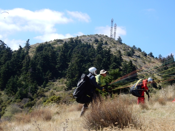 - Petra Wolfgang Wolfram with students and pilots flying at Olympus with Olympic Wings Paragliding holidays in Greece